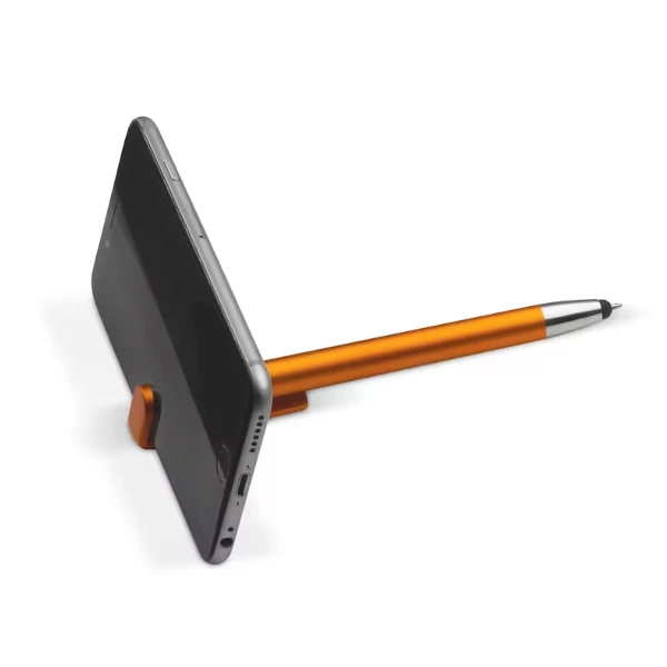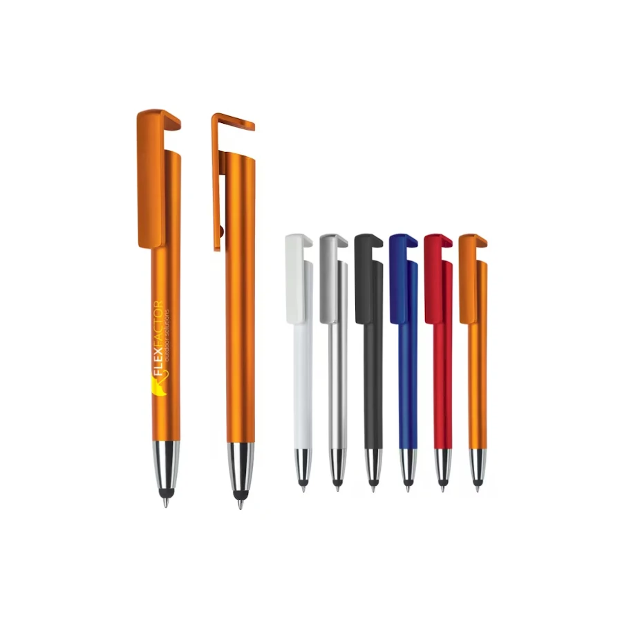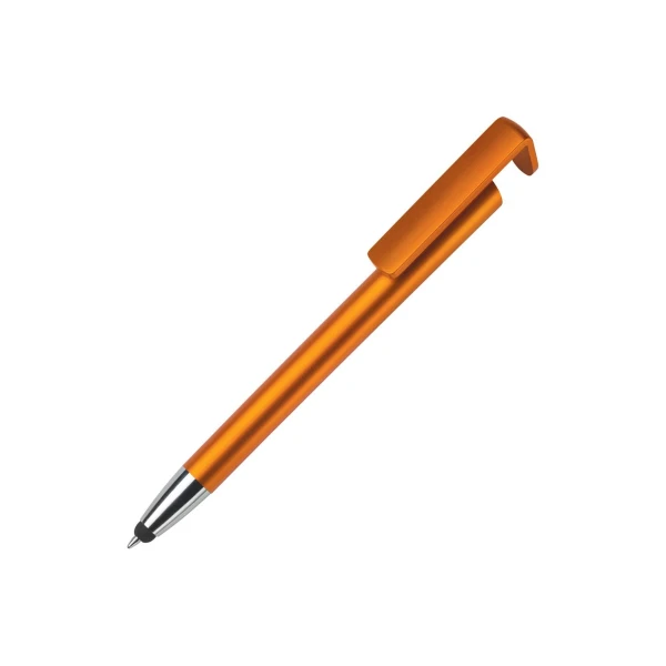 Moderni 3 in 1 kuulakärkikynä kosketuspäällä ja puhelintuella. Kosketusnäyttökynässä sininen muste.