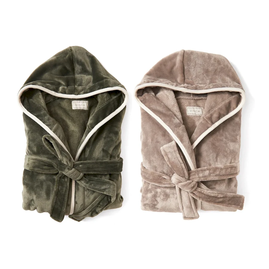 Pehmeän ylellinen hupullinen kylpy- ja oleskelutakki. Aamutakin kankaan kierrätysaste on 70% (RPET).