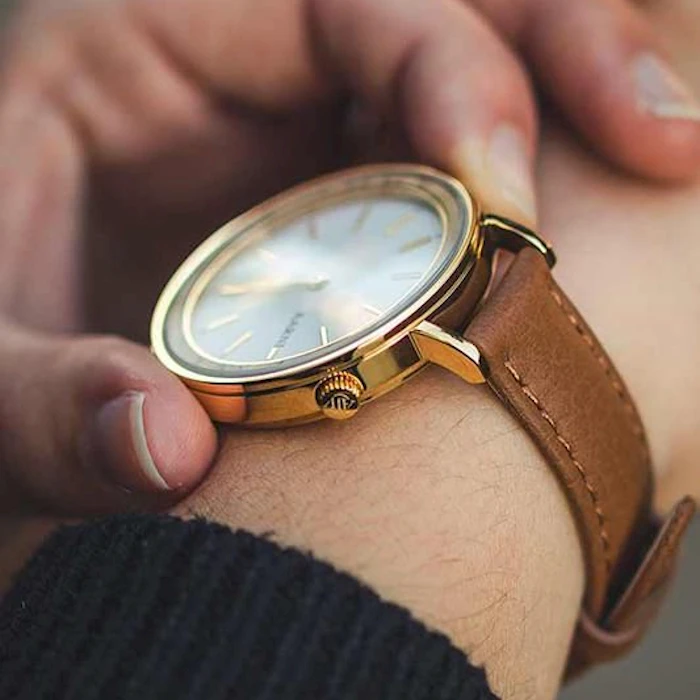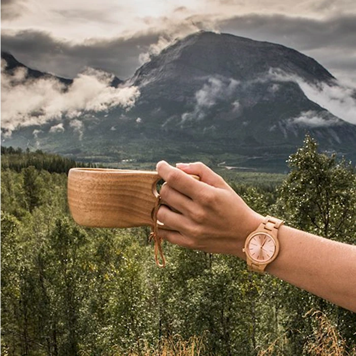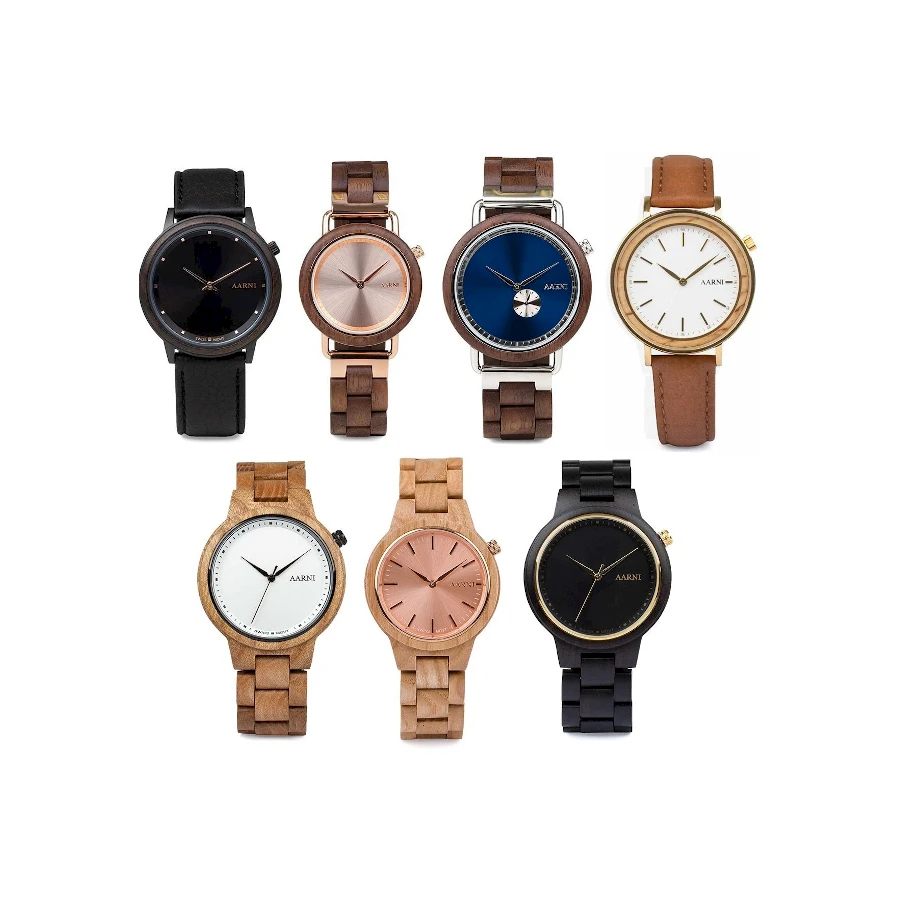 Ihastuttava kotimainen Aarni rannekello. Aarni Aurora rannekello edustaa siroa ja eleganttia arvokkuutta. Aarni Aurora on klassista designia arvostavan valinta. Kultaiset yksityiskohdat ja valkoinen kellotaulu täydentyvät visakoivuisella kehyksellä. Herkän muotokielen viimeistelee kotimaisesta hirvennahasta valmistettu ranneke. Aarni rannekellot toimitetaan tyylikkäässä lahjakotelossa, arvolleen sopivasti. Aarnin rannekellot rakentuvat aitojen luonnonmateriaalien ympärille. Kellojen tyylikäs muotoilu, luonnonmukaiset materiaalit sekä korkealaatuiset koneistot mielyttävät vaativampaakin käyttäjää. Valikoimassamme useita eri malleja. Pyydä tarjous.