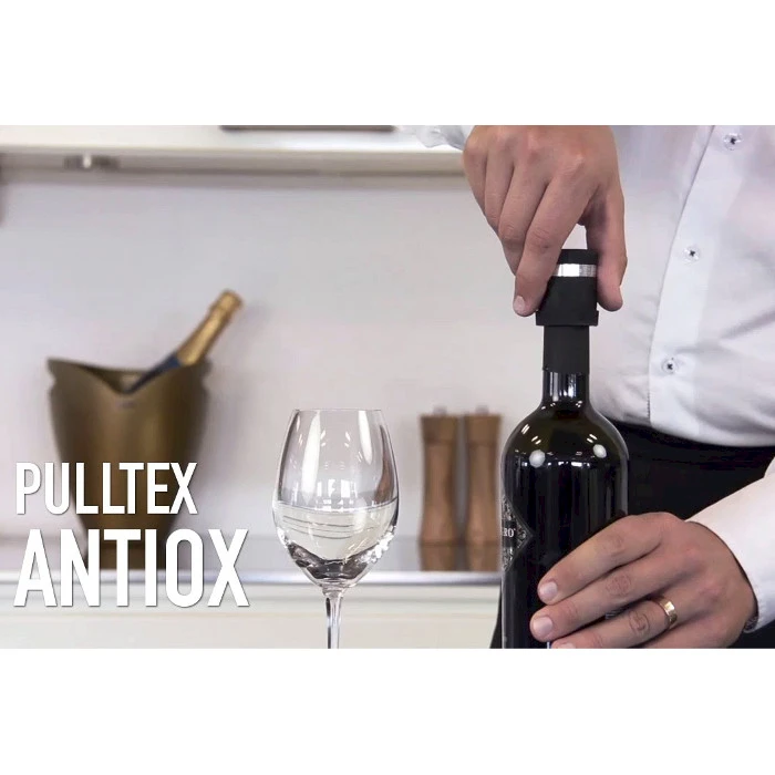 AntiOx-viinistopperi sulkee pullon ilmatiivisti ja näin viini säilyy paremmin hapettomasti pullossa. Silikonisen stopperin patentoitu mekanismi estää viinin hapettumisen ja säilyttää näin viinin luonteen useiden päivien ajan. Päivämääräosoitin kertoo pullon avaamispäivän. Pulltex AntiOx-viinistopperi on viininystävän tarpeellinen ja helppokäyttöinen apuväline. Pyydä tarjous omasta määrästä ja logopainatuksesta.