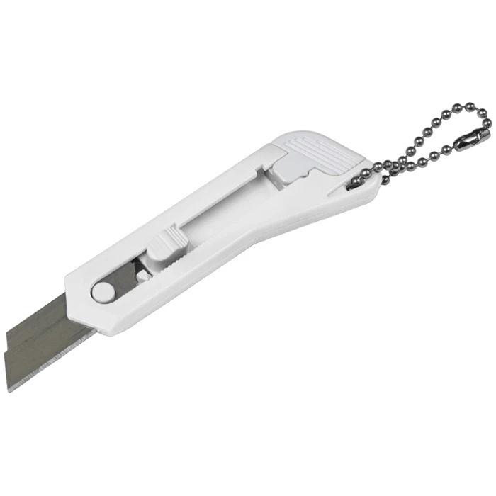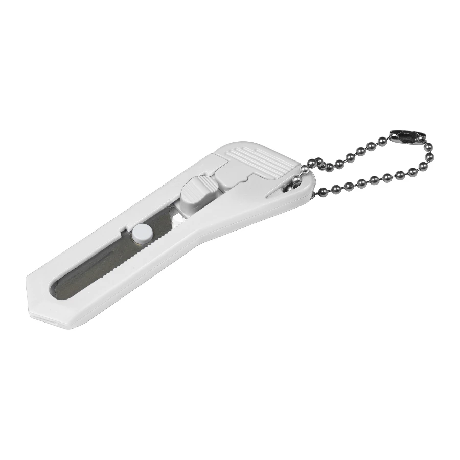 Pieni valkoinen askarteluveitsi avaimenperärenkaalla. Paperiveitsen terän pituus 4 cm. Väri: valkoinenMateriaali: ABS/teräsKoko: 7,5 x 2,2 x 0,7 cm