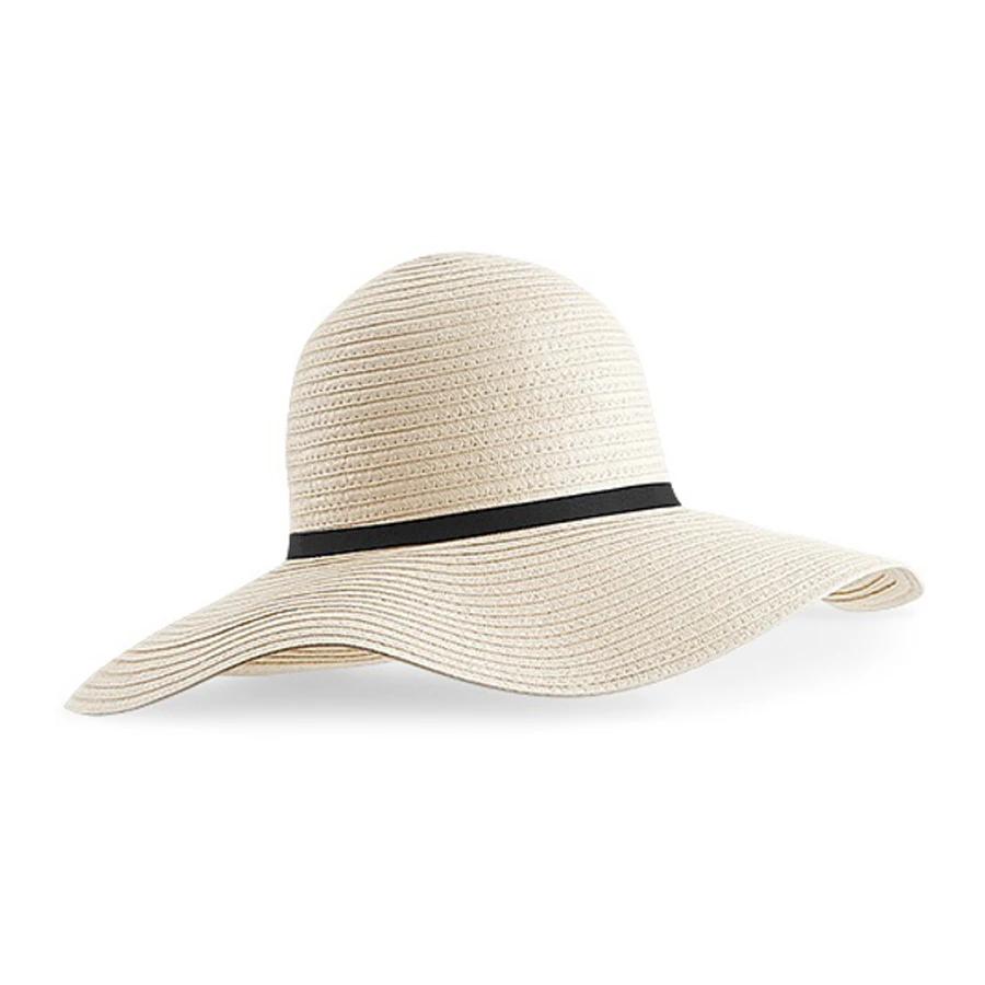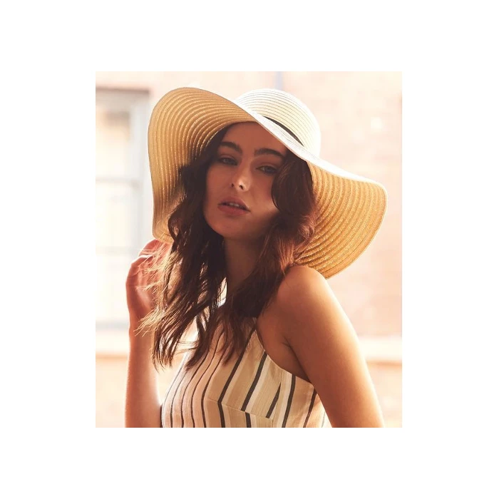 Tyylikäs aurinkohattu naisille. Pyöreä kupuinen ja leveä lierinen hattu on näyttävän näköinen ja suojaa auringolta kuumina kesäpäivinä.