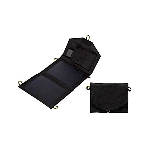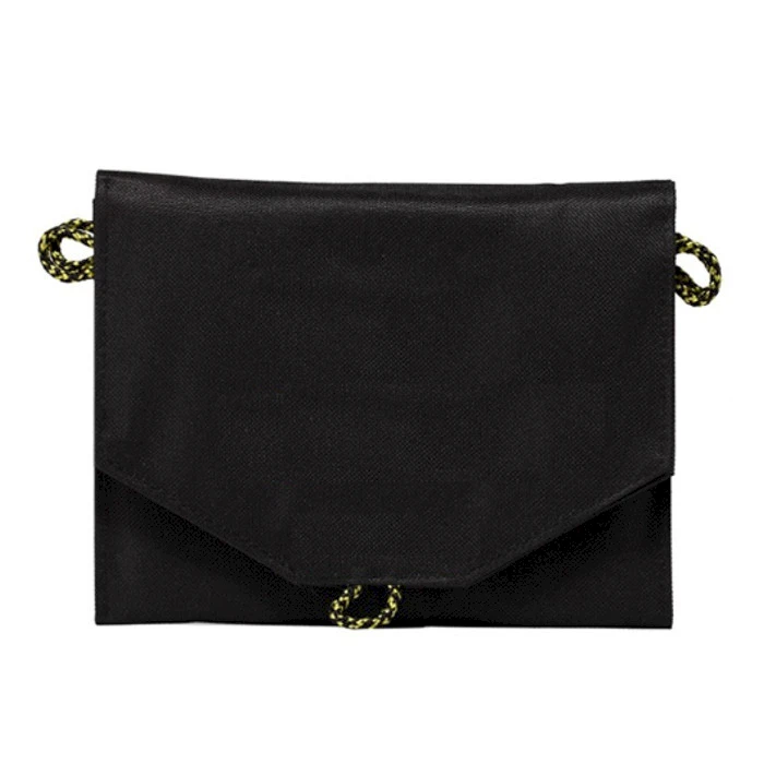 Aurinkokennolaturi mustassa suojapussissa. Lataa puhelimeesi kätevästi virtaa auringosta vaikkapa vesillä, piknikillä tai retkellä. Ripustettavalla aurinkolaturilla saat puhelimeesi helposti virtaa auringon säteistä. Laturissa on 5V/7W auringonvalosta latautuva laturi. Kytke puhelin USB-liittimellä aurinkokennolaturiin ja aseta puhelin suojataskuun latauksen ajaksi. Karabiinikoukkujen avulla voit kiinnittää laturin esimerkiksi reppuun. Laturin koko taitettuna 195 x 155 x 15 mm, Laturin koko avattuna 455 x 155 mm.