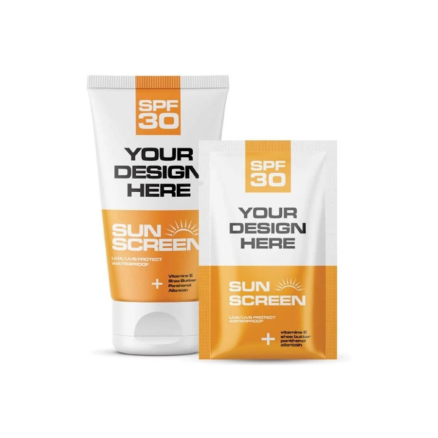 Aurinkovoide omalla logolla. Laadukas, helposti levittyvä ja vedenkestävä UVA/UVB-suojan sisältävä aurinkovoide. Dermatologisesti testattu voide sopii myös herkälle iholle. SPF 30 tai SPF 50. Pakattuna 3 ml kertakäyttöpussiin, joka painetaan asiakkaan aineistolla. Pussin koko 60 x 80 mm. Saatavana useita eri pakkausvaihtoehtoja, kuten tuubi tai kertakäyttöpussi. Säilyvyys 24 kk. Valmistettu Euroopassa.