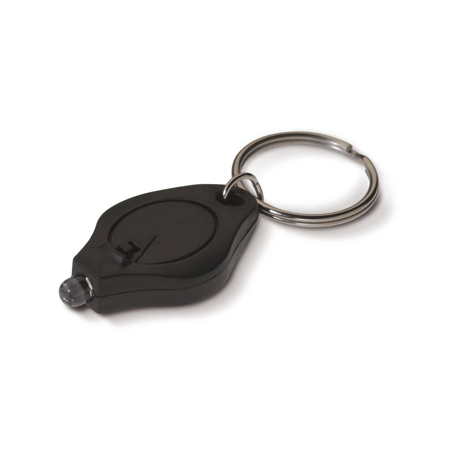 Pieni avaimenperä, jossa LED-valo. Liukukytkimellä valittavissa kaksi eri toimintoa. Koko 43 x 23 x 8 mm. Nopea toimitusaika.