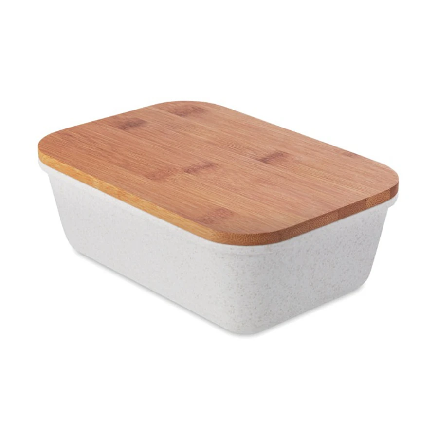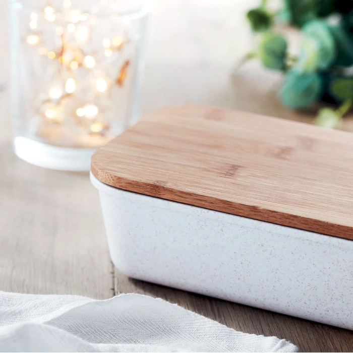 Eväsrasia jossa bambukansi. Rasia on valmistettu 50 % bambukuidusta ja 50 % PP.Väri: valkoinenMateriaali: bambukuitu/PPKoko: 20 x 14 x 7 cm