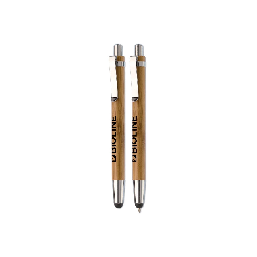 Yhdistetty kuulakynä ja kosketuskynä, jossa bamburunko ja metallisoidut osat. Pitkäkestoinen säiliö, jossa musta muste. Koko Ø11x137 mm. Bamburunkoisella kosketusnäyttökynällä kirjoitat ja käytät kosketusnäyttöä kynää kääntämättä. Modernissa kynässä on yhdistetty kosketusnäyttöpää kynän samaan päähän. Bambu kosketuskynä omalla painatuksella on ekologinen ja tyylikäs mainoslahja yrityksellesi. Tilaa logolla varustetut kynät helposti ja nopeasti.