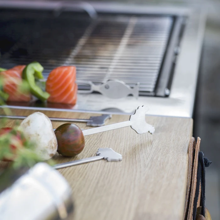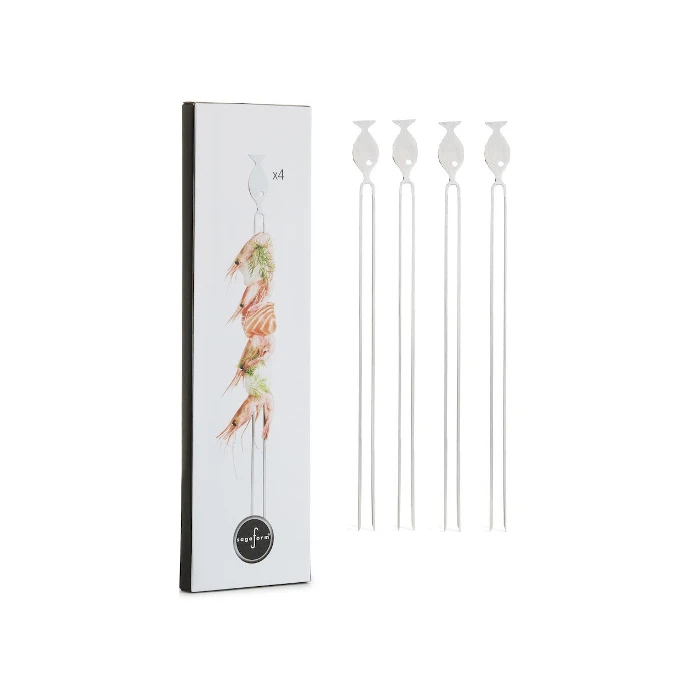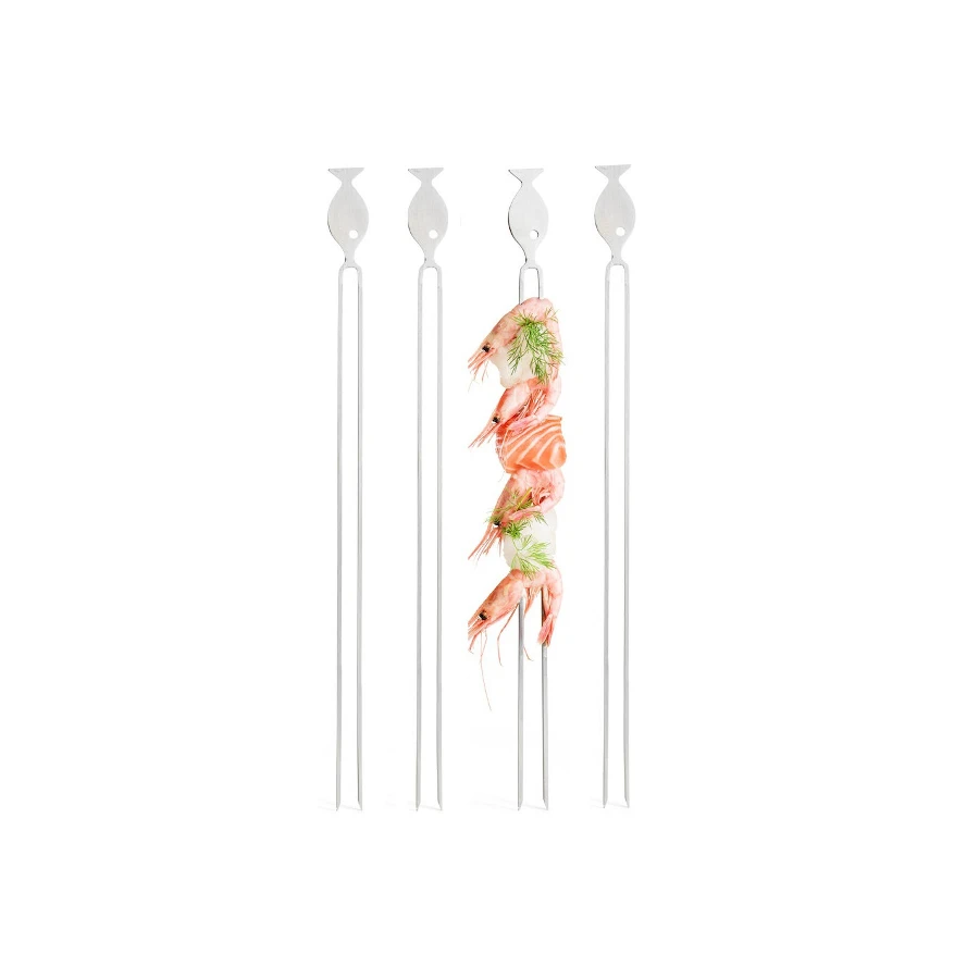 4 kpl grillivarrasta lahjapakkauksessa. 4 grillivarrasta soveltuvat hyvin kalan grillaamiseen. Esimerkiksi katkaravut ja kalapalat pysyvät kaksinkertaisissa vartaissa hyvin. Materiaali: ruostumaton teräs