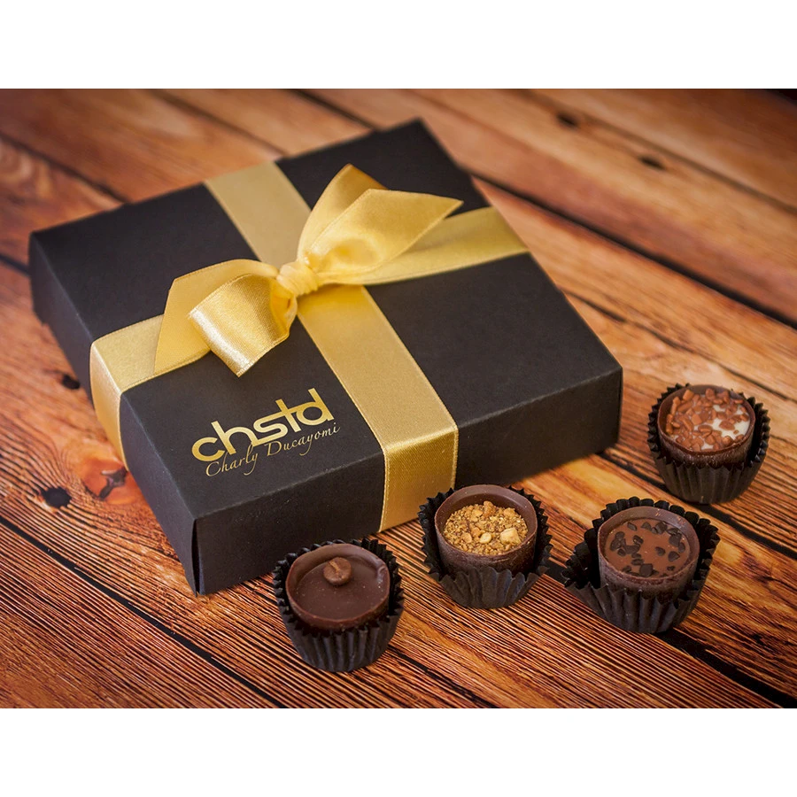 Ihastuttava suklaarasia, jonka sisällä herkullisia belgialaisia suklaakonvehteja. Sopii nautittavaksi kahvin tai viinin kanssa. Lahjarasia sisältää ensiluokkaisia belgialaisia suklaakonvehteja. Saatavilla kolmea eri kokoa. Väreinä musta, hopea tai kulta. Rasiaan voidaan tehdä tyylikäs kullansävyinen logopainatus. Pyydä tarjous omasta määrästä.