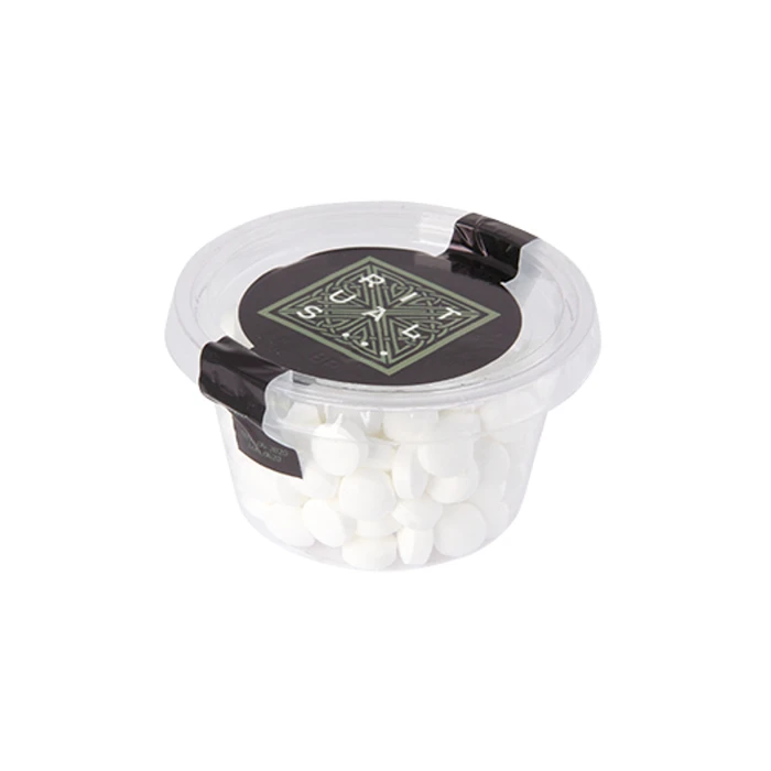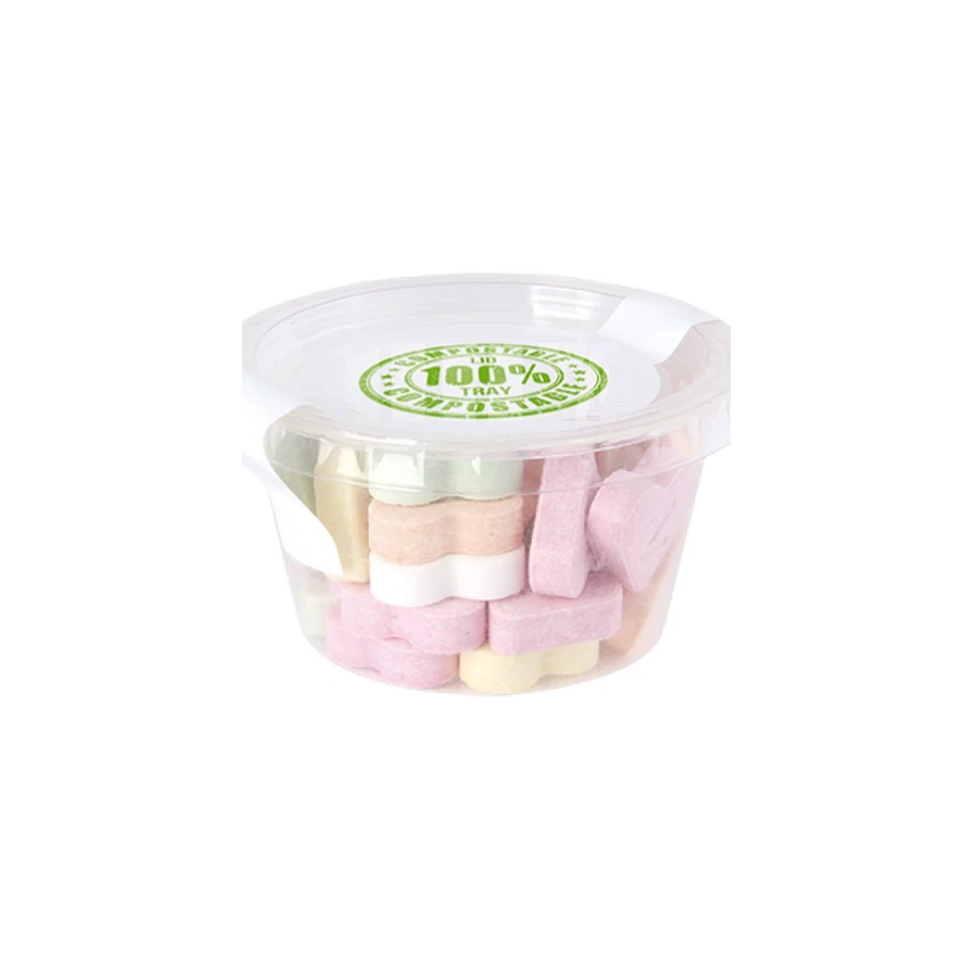 Biokarkkirasia on uusiutuvasta kasvipohjaisesta muovista valmistettu biokulho. Läpinäkyvä rasia on 100% biohajoava. Sisältö hedelmäsokeri mintut, hedelmäpastilli tai hedelmä sydämmet valintasi mukaan. Yrityksesi logo ja mainosviesti voidaan painaa monivärisesti kääreeseen. Väri: läpinäkyväMateriaali: biohajoava muoviKoko: Ø 70 x 26 mm, Ø 70 x 41 mm