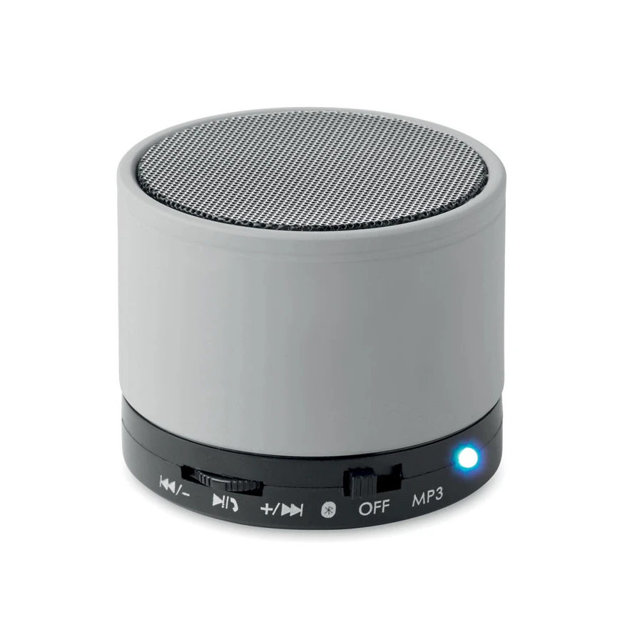 Kooltaan pieni pyöreä kaiutin, jossa LED-valo. Ladattava bluetooth- kaiutin voidaan liittää matkapuhelimen pariksi, jolloin se toimii paitsi matkakaiuttimena ja handsfree-yksikkönä. Kaiutin on 3W ja siinä on 300 mAh ladattava akku. ABS-kuori. Sisältää AUX/USB -johdon.
