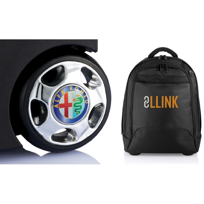 Cabin Bag vetoreppu on paljon matkustavan ihmisen käytännöllinen matkakumppani. Läppärirepun pyörät ja vetokahva mahdollistavat kevyen rullaamisen. Vetoreppu soveltuu kooltaan lentokoneen matkustamoon. Repussa on oma osasto kannettavalle tietokoneelle, etutasku, vyötärökiinnitysnauha ja irrotettavat olkahihnat. Trolleyrepussa on pehmustetut kantokahvat, alumiininen teleskooppikahva, pohjassa kevyesti rullaavat pyörät. Vetoisuus 27 litraa. Saat näyttävän logomerkkauksen renkaaseen tai reppuun. Pyydä tarjous.