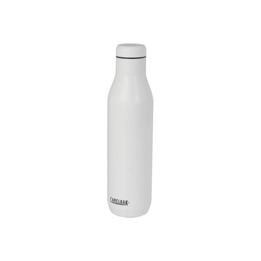 CamelBak® Horizon 750 ml:n tyhjiöeristetty vesi-/viinipullo. Nauti viinistäsi Horizon 750 ml:n viinipullolla. Kaksiseinäinen tyhjiöeristetty rakenne säilyttää suosikkiviinisi ihanteellisen lämpötilan ja ulkopinnan jauhepinnoite estää nesteen tiivistymisen. Olipa sitten kyseessä piknik ulkona tai illalliskutsut kotona, tämä viinipullo on suunniteltu pitämään viinisi kylmänä 35 tuntia ja jos käytät pulloa glögille, se pysyy kuumana jopa 25 tuntia. 750 ml:n tilavuus ja siihen mahtuu kokonainen viinipullo. Elinikäinen takuu valmistusvirheille. Liukumaton silikonipohja. Ei sisällä BPA:ta, BPS:ää tai BPF:ää.