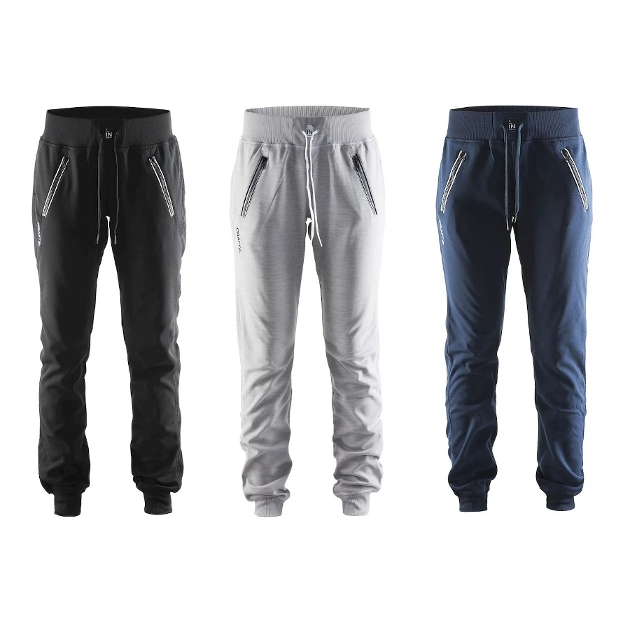 Collegehousut pehmeästä ja mukavasta puuvillan tuntuisesta polyesteristä naisille. Kaksi vetoketjullista taskua. Hyvä istuvuus. Naisten mallissa lahkeissa resorit ja korkea vyötäröresori.