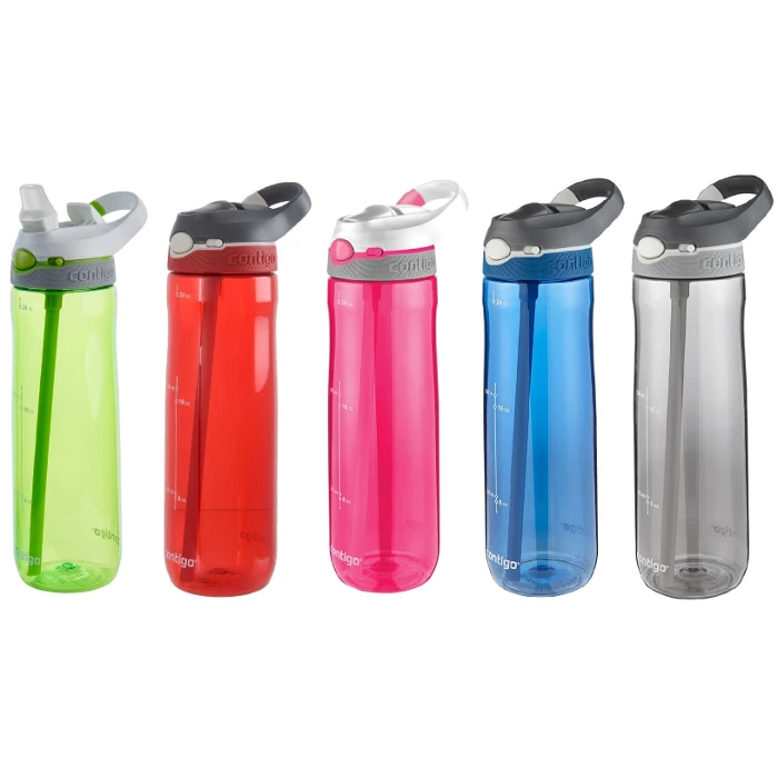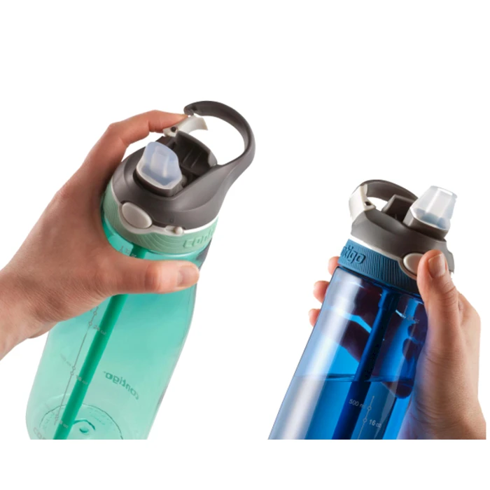 Contigo® -juomapullo omalla logopainatuksella. Vesipullossa on patentoitu AUTOSEAL® -tekniikka, jonka ansiosta pullo on 100 % vuotamaton. Pullon nokka on helppo avata ja sulkea yhdellä kädellä ja napin painalluksella. Juomanokka aukeaa nappia painamalla. Juomisen jälkeen juomanokan voi painaa kannen alle suojaan lialta ja bakteereilta kuljetuksen ajaksi. Vesipullossa on kätevä karabiinihaka, jolla voit kiinnittää pullon vyölle tai reppuun. Konepestävä. Urheilupullo on valmistettu iskunkestävästä BPA-vapaasta Tritaanista. Vetoisuus 720 ml. Pyydä tarjous omasta määrästä ja logopainatuksesta.Värit: vihreä, punainen, sininen, harmaa, rosaKoko: Ø 8,5 cm x 26 cm korkeaVetoisuus: 720 ml
