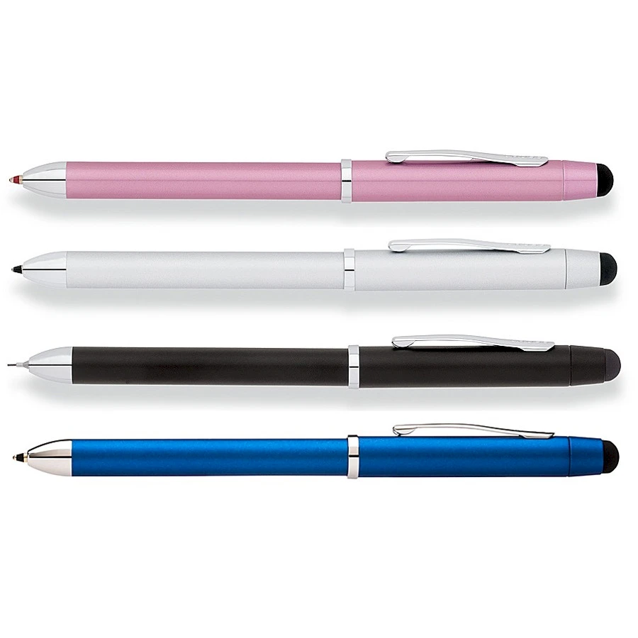Cross Tech 3+ on todellinen monitoimikynä. Yksinkertaisella käännöllä kynän erikärjet saa käyttöön. Kolmitoimikynässä on kolme eri kirjoituskärkeä, musta kuulakynä, lyijykyä sekä punainen kuulakynä. Kynän toisessa päässä on Stylus-kärki kosketusnäytöille, jonka alla vielä pyyhekumi. Saatavana 8 upeaa metalliväriyhdistelmää. Kynät toimitetaan tyylikkäissä lahjarasioissa. Suosittelemme logomerkkausta laserkaivertamalla. Pyydä tarjous.
