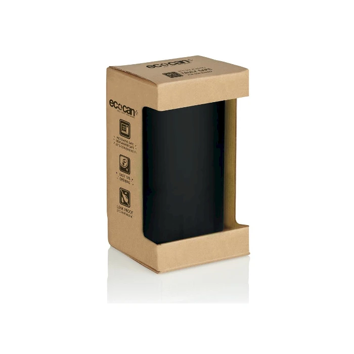 Biohajoavasta kasvispohjaisesta muovista valmistettu ekologinen juomatölkki kylmille ja kuumille juomille. Eco tölkki on valmistettu 100% maatuvasta PLA-materiaalista, ilman muovia. Eko juomatölkki on BPA-vapaa, biohajoava, kompostoituva, sopii mikroon ja astianpesukoneeseen. Muki on 100% vuotamaton. Pakattu ruskeaan lahjapakkaukseen jossa tuotetiedot.