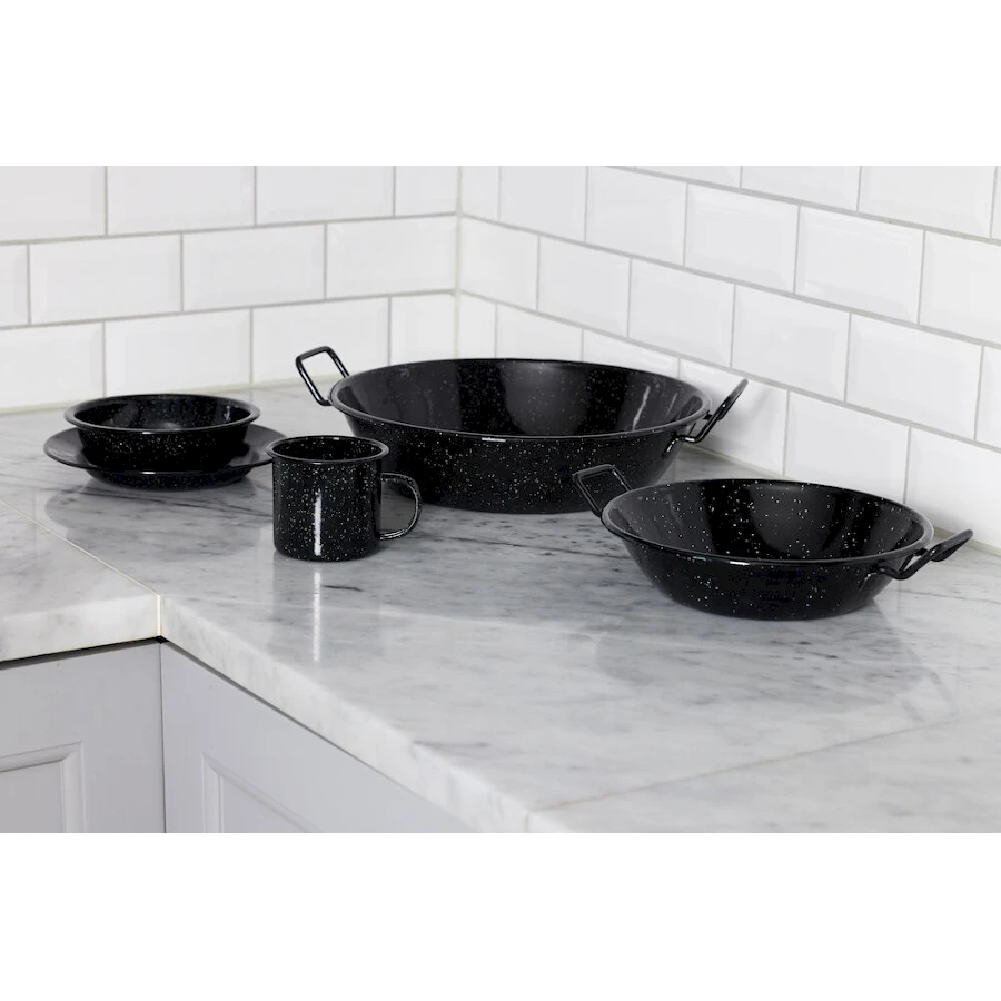 Emalipannu Doris sopii käytettäväksi paellan, wokin, vihannesten tai keiton valmistukseen, kaikkeen mitä voit kypsentää avotulella. Pannu on valmistettu emaloidusta valuraudasta, jonka pinta on erittäin kestävä. Älä käytä teräviä välineitä, jotka voivat vahingoittaa emalia. Valurauta lämpenee nopeasti, kun taas emali suojaa ruosteelta. Doris pannua on saatavana kahdessa koossa. Todellinen suosikki sinulle, joka elät aktiivista elämää. Voidaan pestä koneessa matalassa lämpöitlassa. Saatavana kaksi kokoa.