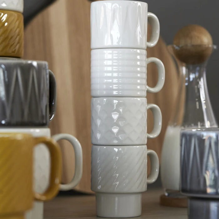 Ilmeikkäällä reliefikuviolla somistettu espressomuki kuuluu Coffee & More -tuotesarjaan, jonka Sagaform on suunnitellut yhteistyössä muotoilija Margot Barolon kanssa. Muki noudattaa 70-luvun selväpiirteistä ja leikillistä muotokieltä. Eri osista, kuvioista ja väreistä koostuvan sarjan tuotteita on kiva yhdistellä keskenään! Astiat ovat mikron ja konepesun kestäviä.