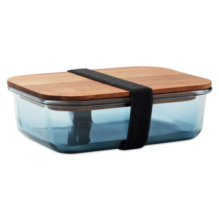 Lasinen lounasrasia, jossa akaasiapuinen kansi ja RPET-kuminauhasuljenta. Eväsrasian tilavuus 800 ml. Astiapesukoneen ja mikroaaltouunin kestävä. FSC®-sertifikaatti | FSC 100%, W16.3, FSC-C213206.
