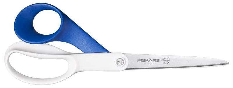 Fiskarsin yleissakset keittiöön ja kotiin. Suomi 100 juhlavuoden sinivalkoisia saksia valmistetaan rajoitettu erikoiserä. Koko: 21 cm.
