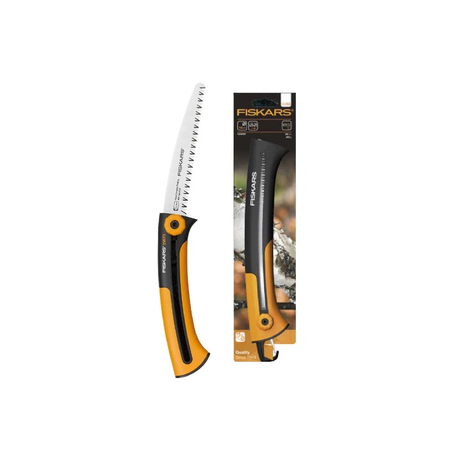 Fiskars Xtract™ sahat ovat loistava apu leikkaamaan ja karsimaan tuoreita puita ja oksia. Retkisahan sisään vedettävän mekanismin ja kiinteän vyölenkin ansiosta sahaa voi kantaa ja säilyttää turvallisesti. Terän pituus 160 mm. Saha sopii puutarhaan, mökille, retkelle tai vaelluskelle. Logomerkkaus laserkaivertamalla sahaan. Pyydä tarjous.