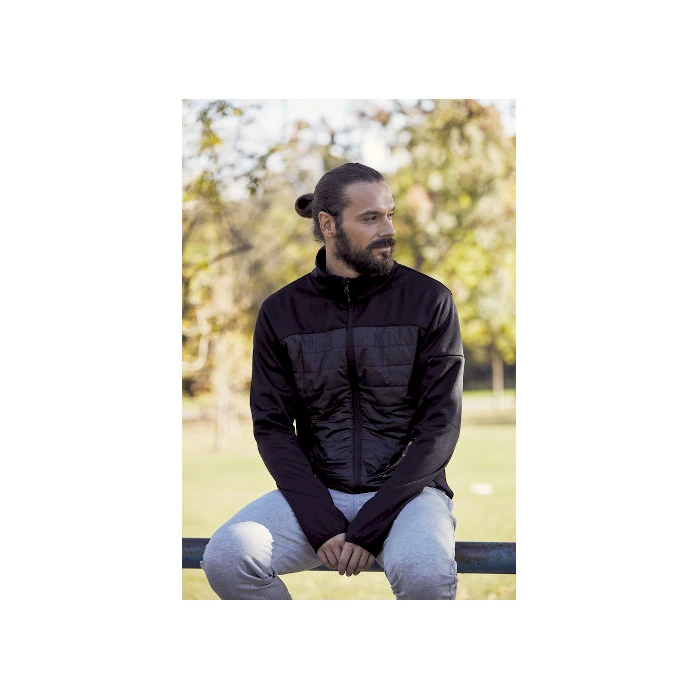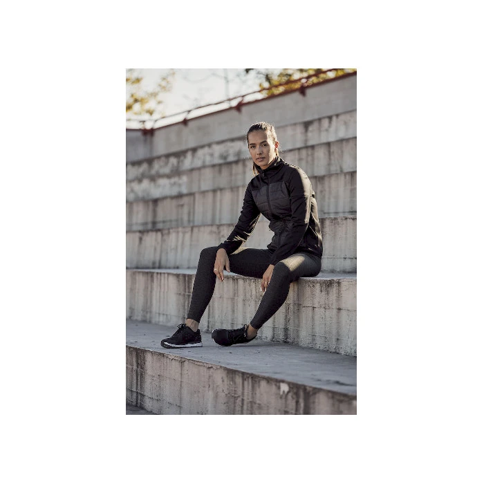 Kevyesti topattu fleece-takki, jossa heijastava printti. Kaksi vetoketjullista sivutaskua. Vetoketjullinen piilotasku hihassa, 2 sisätaskua ja hihansuissa peukaloreiät. Kätevä ratkaisu kuulokkeille. Fleece-takki saatavana miehille ja naisille.