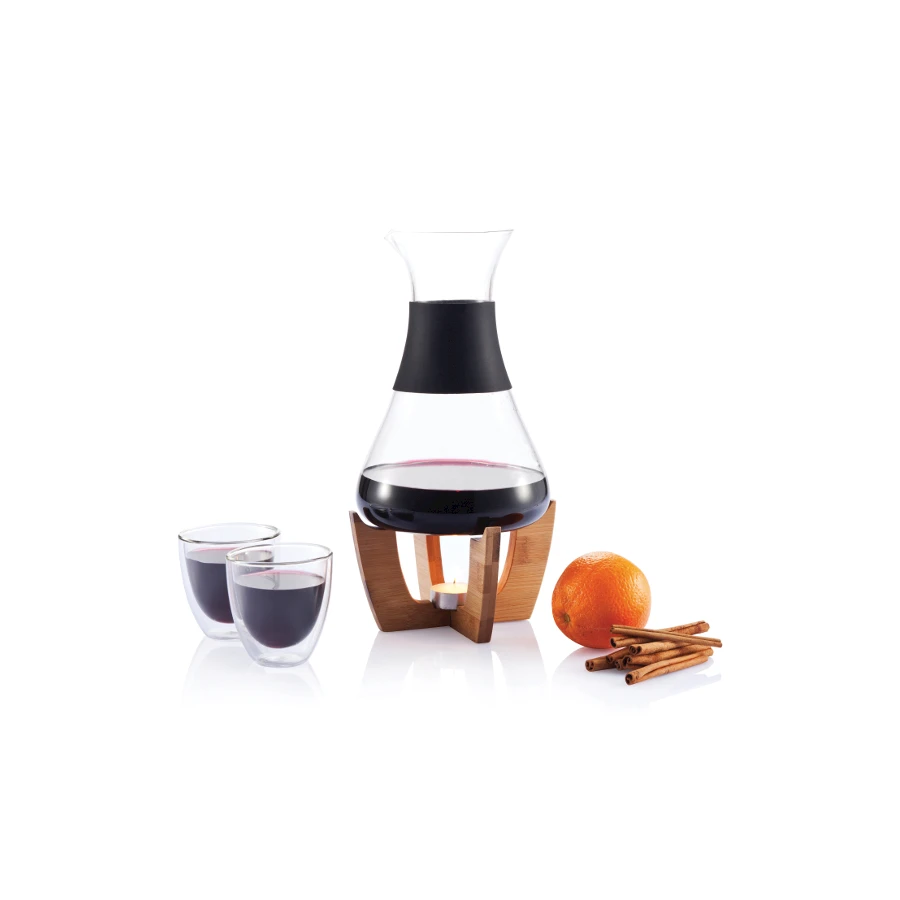 Glögisetti, joka on monikäyttöinen ympäri vuoden. Karahvisettiin kuuluvalla tuikkukynttilällä voit lämmittää drinkit kylminä talvi-iltoina. Setti sopii erityisen hyvin joululahjaksi ja soveltuu maukkaan glögin tarjoiluun. Kesäaikaan karahvisettiä voi käyttää ilman tuikkukynttilää kylmien ja virkistävien juomien tarjoiluun. Setti sisältää karahvin, kaksi kappaletta kaksoiseinämäistä lasia ja tuikkukynttiläalustan. Lahjakotelo.Koko: 30,5 x 16,8 cm Pyydä tarjous omasta määrästä ja logomerkkauksesta.
