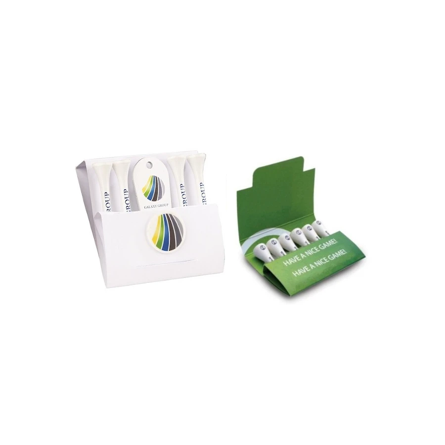Biohajoavat Golftiit kätevässä matchbook pakkauksessa. Tiipakkaus sisältää kuusi vehnä- ja maissitärkkelyksestä valmistettua biohajoavaa golftiitä. Saatavilla myös muita malleja. Yrityksesi mainosviesti voidaan painaa sekä pakkaukseen ja golftii tikkuihin. Biotii ja Golftiit ovat loistava liikelahja golfasiakkaille!