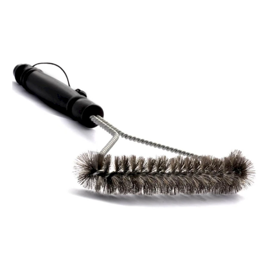 Grilliharjalla puhdistat ritilän ja grillin ahtaat nurkkaukset helposti. Pitkä ja leveä harja pitää kätesi riittävän kaukana kuumasta grillistä. Ruostumattomasta teräksestä valmistetussa harjassa on musta kahva ja ripustuslenkki. Harjan kokonaispituus 30 cm.