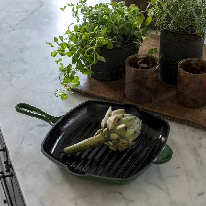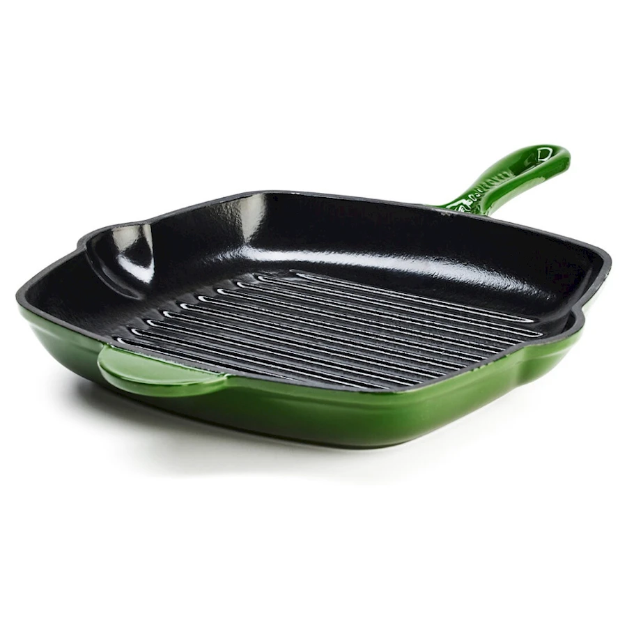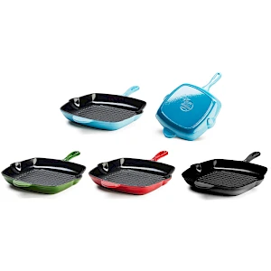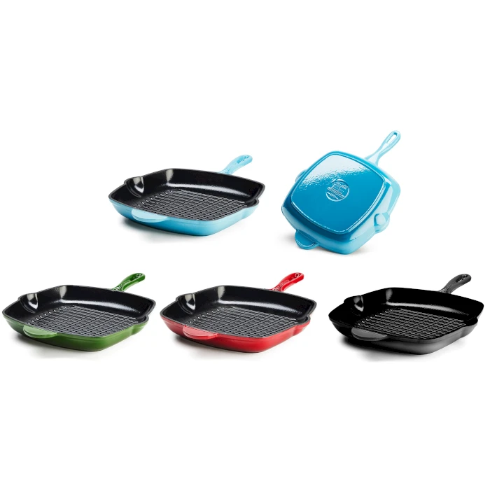 Tyylikäs grillipaistinpannu Jerneverket. Valurautapannun sisäpuolella musta emalipinta. Täydellinen pannu mestarikokille. Paistinpannu kestää korkeaa kuumuutta. Värit: vihreä, punainen, vaale turkoosin sininen, musta