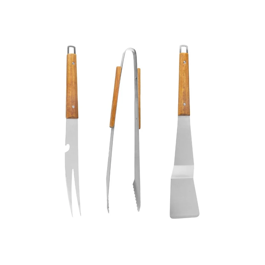 Käytännöllinen 3-osainen grillisetti jossa 5 toimintoa. Lasta, pihdit ja haarukka, jossa on myös leikkaava terä sekä pullonavaaja. Tyylikäs muotoilu, valmistettu akaasiapuusta ja ruostumattomasta teräksestä. Tasokas lahja intohimoiselle grillaajalle. Lahjapakkaus.Materiaali: ruostumaton teräs/akaasiaKoko: 440 mm