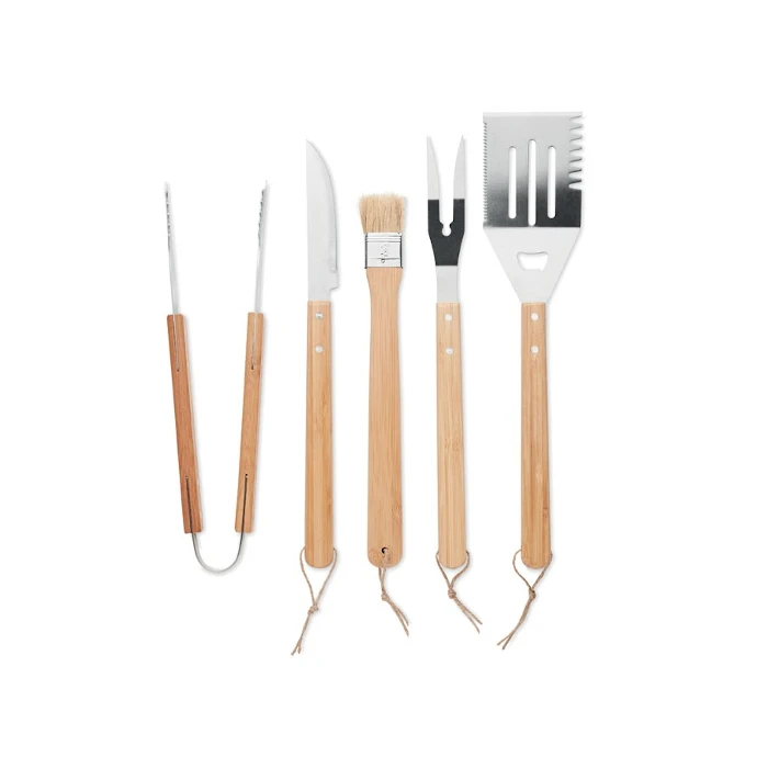 Grillisetti jossa 5-osaa. Viisiosainen grillisetti sisältää kaikki tarpeelliset välineet grillaukseen. Yrityksen logomerkkaus voidaan painaa säilytyskoteloon.