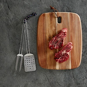 Minimalistista skandinaavista muotoilua edustavat grillivälineet ruostumattomasta teräksestä. Aterimet voidaan puhdistaa helposti sekä käsin että koneessa. Toimitetaan hienossa lahjalaatikossa reseptivihkon kanssa. Koko 34x7,5 cm, 34x4 cm. Pakattu lahjalaatikkoon.