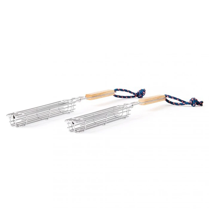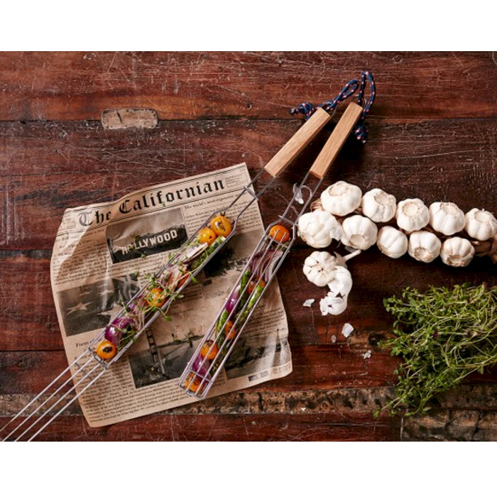 Kahden nerokkaan grillikorin setti. Varraskori on kätevämpi kuin normaali grillivarras. Aseta haluamasi ainekset koriin, sulje kansi, grillaa ja käännä. Etuna vartaaseen on nopeus ja helppous. Toimitetaan hienossa lahjalaatikossa reseptivihkon kanssa. Pakattu lahjalaatikkoon. Koko: 49 x 4 cm