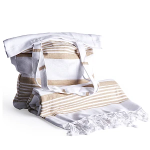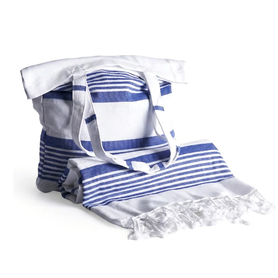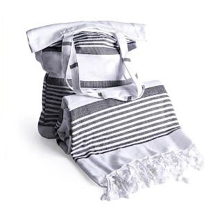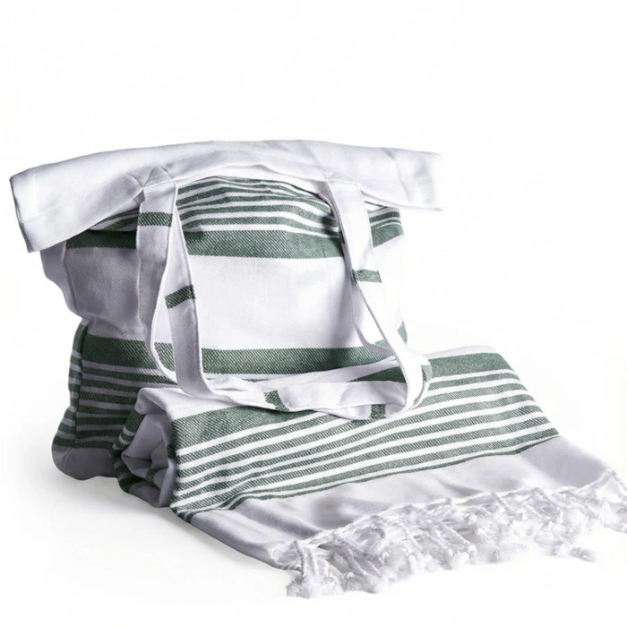 Ihanan pehmeä Hamampyyhe ja kassi yhdessä lahjasetissä. Mainio kesäinen lahjaidea ja perussetti lomanviettoon tai mukaan rannalle. Lahjasetissä on 70 % kierrätyspuuvillasta valmistettu hamamkassi ja pyyhe. Setti sopii niin rannalle kuin kylpyhuoneeseen. Väreinä sini/valkoinen, musta/valkoinen, khaki/valkoinen, vihreä /valkoinen.