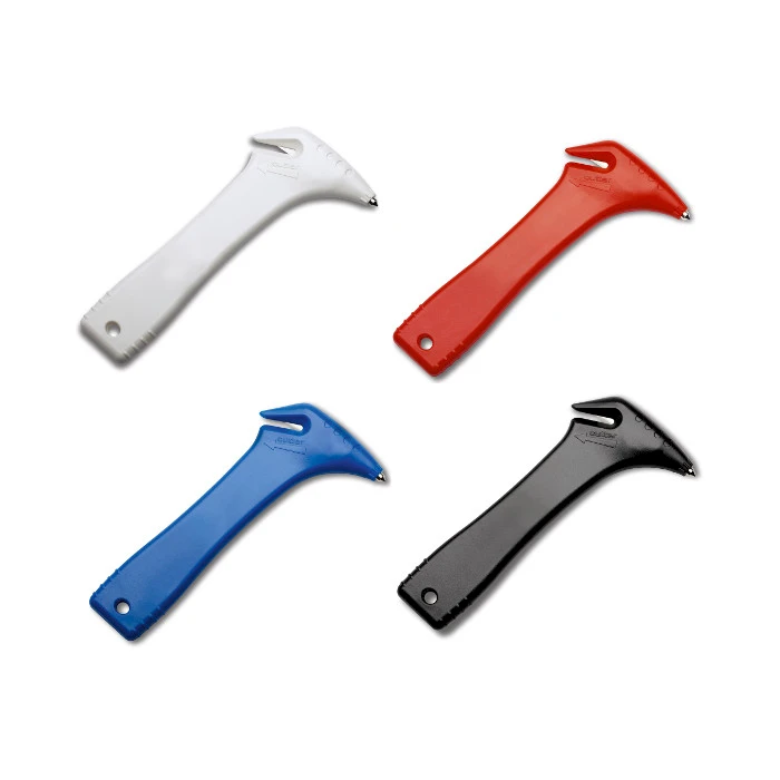 Pieni ja kätevä hätävasara autoon. Vasarassa on terä turvavyön leikkaamista varten ja metallikärki jolla voi rikkoa ikkunan. Vasarassa kätevä tarrakiinnitys, jolla voit helposti kiinnittää sen autoon. Anna lahja joka lisää autoilijan turvallisuutta. Yksittäin pakattu.Koko 145 x 68 x 12 mm. Helposti postitettava tuote.Pyydä tarjous omasta määrästä ja logomerkkauksesta.