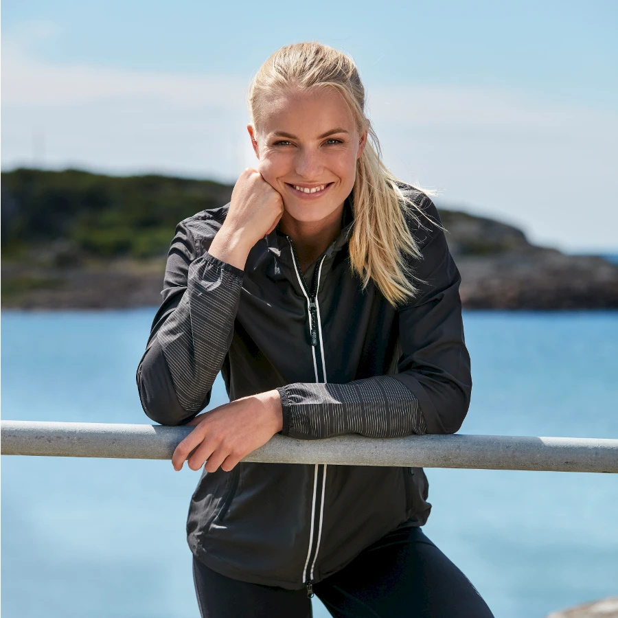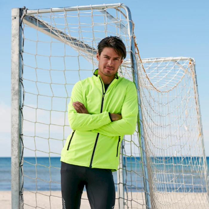 Tuulenpitävä juoksutakki heijastavilla yksityiskohdilla. Heijastavan treenitakin olkapäissä, selässä ja hihansuissa kiinteä heijastinnauha, joka lisää näkyvyyttä pimeässä. Edessä kaksisuuntainen heijastava vetoketju. Selässä tuulettavaa mesh-kangasta. Vetoketjuissa kiinteä heijastinnauha ja yhteen sointuvat vetimet. Vetoketjulliset sivutaskut. Takin voi taitella sivutaskuun, joten se on helppo ottaa mukaan. Naisille ja miehille omat mallit.