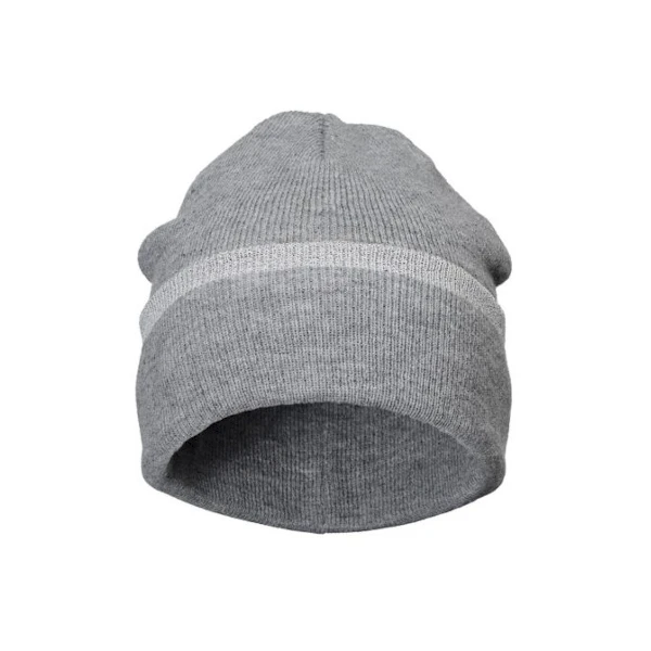 Kaksinkertainen pipo on sileää neuletta ja käänteeseen on neulottu heijastava raita. Pidempi malli antaa mahdollisuuden kääntää reunaa reilusti tai jättää pipon roikkumaan rennosti takaraivolle. Tämä pipo pitää pään lämpimänä kylmälläkin säällä. Huomioithan, että tuote ei ole henkilönsuojain.