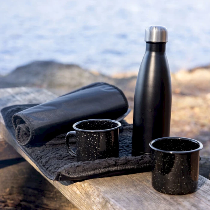 Lahjasetti sisältää kaksi emaloitua mukia, kaksi pehmeää istuinalustaa ja Nils teräspullon. Teräspullo pitää juoman lämpimänä jopa 12 tuntia. Tämä setti on yksinkertaisuudessaan täydellinen ja sopii jokaiselle!