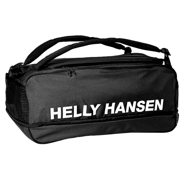 Helly Hansenin tilava ja käytännöllinen laukku, joka kannetaan kuin reppu. Laukussa tuuletetut osastot kengille ja kosteille varusteillesi. Erillinen kuivaosasto. Vetoketjullinen ulkotasku. PFC vapaa.