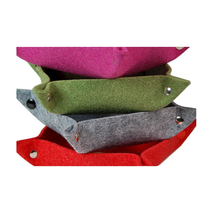 Kaunis ja pehmeä huopavati on kokoontaitettava tarjoilu- ja säilytysastia. Pehmeä kulho kootaan kätevästi nepparein kulmista. Materiaali ekoloogista villahuopaa.Koko 20 x 20 x 4 cm. Saatavilla eri värejä.