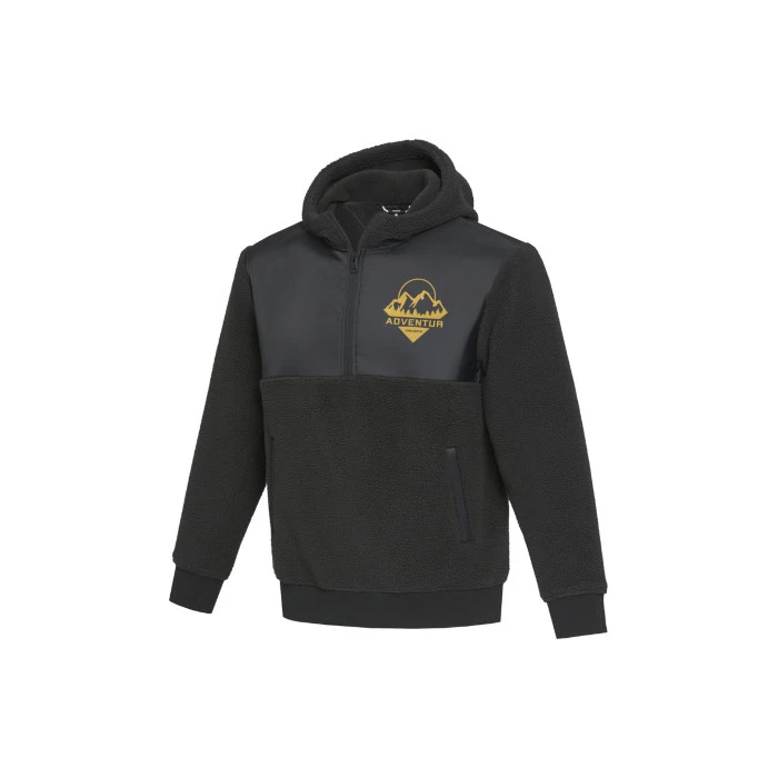Sherpa-fleece on valmistettu kierrätetystä pehmeästä Teddykankaasta. Sen kontrastikangas on valmistettu 100-prosenttisesti kierrätetystä nylonista, mikä tuo modernin ilmeen ja pienentää ympäristövaikutusta. Reilun kokoinen fleecetakki takaa rennon ilmeen. Keskiosan 1/4-vetoketjusuljenta ja huppu takaavat suojan muuttuviin sääolosuhteisiin. Unisex malli sopii niin miehille kuin naisille. Sherpa-fleece huppari tarjoaa loistavaa mukavuutta ja modernia tyyliä riippumatta siitä, oletko seikkailemassa luonnossa tai vain rentoutumassa kotona. Sherpa kierrätetty polyesteri, 370 g/m2. Pehmeä ja lämmin fleece painatuksella on täydellinen valinta yrityksille, jotka haluavat yhdistää mukavuuden ja brändinäkyvyyden.