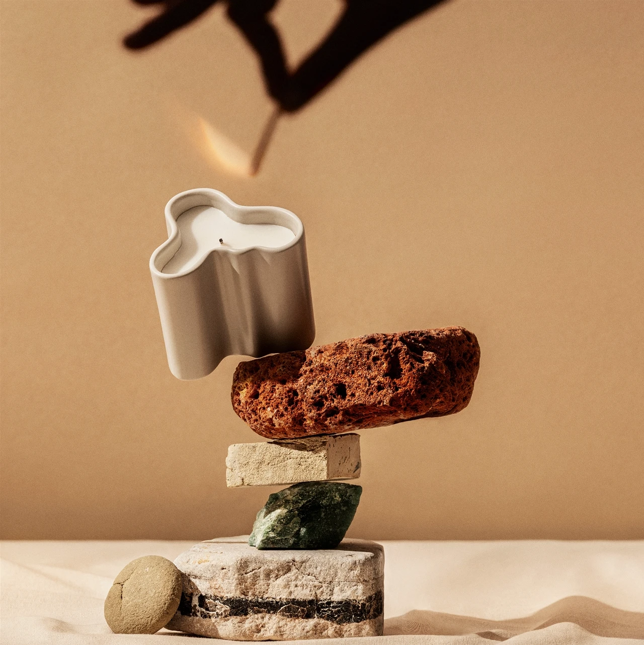 Aalto Hiekka -tuoksukynttilä yhdistää maanläheisyyden ja hienostuneen herkkyyden lasinvalmistuksen tärkeimpään elementtiin. Kardemumma, mustapippuri ja kvitteni avautuvat mokkanahan, jasmiinin ja orriksen pehmeään syliin. Setripuu, santelipuu ja vetiver juurruttavat tuoksun rauhallisesti. Kauniisti muotoiltu keramiikkamalja toimii niin kynttilän astiana kuin pysyvänä sisustuselementtinä kynttilän palettua loppuun. Vinkki: Leikkaa sydänlangat 3–6 mm mittaisiksi Iittalan kynttiläsaksilla optimaalisen palamisen ja vähäisemmän savun takaamiseksi.