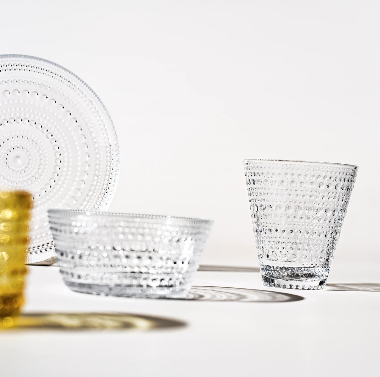 Muotoilija Oiva Toikan uraauurtava Kastehelmi-sarja syntyi Toikan päätöksestä peittää puristelasiin jäävät saumakohdat. Näin syntyi sarja, jonka pinnalla loistavat lasihelmirivit muistuttavat aamuauringossa kimaltavia kastepisaroita. Lasipisarat heijastavat kauniisti valoa monikäyttöisten Kastehelmi-lasiastioiden pintarakenteessa. Rakastettuun Iittalan Kastehelmi-sarjaan kuuluu erikokoisia käytännöllisiä, toimivia ja koristeellisia lasiastioita. Herkän kaunis, kirkas Kastehelmi-kulho kestää arjen käyttöä: se sopii tarjoilukulhoksi aamupalalle, naposteltaville tai makeisille. Upeat liikelahja asiakkaille ja henkilökunnalle. Konepesun kestävä.