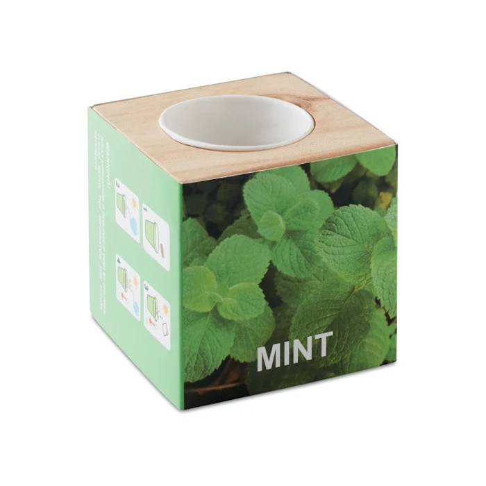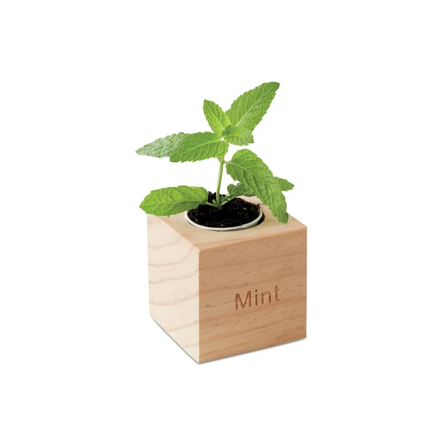 Istutuskuutio painetulla vyötteellä. Puusta valmistettu istutuskuutio. Kuution mukana toimitetaan mieleisesi siemenet ja kompostipelletti. Saat näyttävän mainospainatuksen vyötteeseen. Saatavilla useita eri kokoja ja siemenvaihtoehtoja.