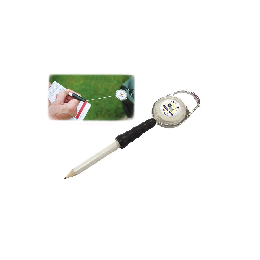 Golfbägiin tai vyölenkkiin kiinnitettävä ulosvedettävä jojokynä. Kynä kulkee varmasti mukanasi. Jojossa klipsikiinnitys, sisäänkelautuva naru ja lyijykynä. Logopainatus voidaan tehdä metalliseen jojoon tai puukynään.
