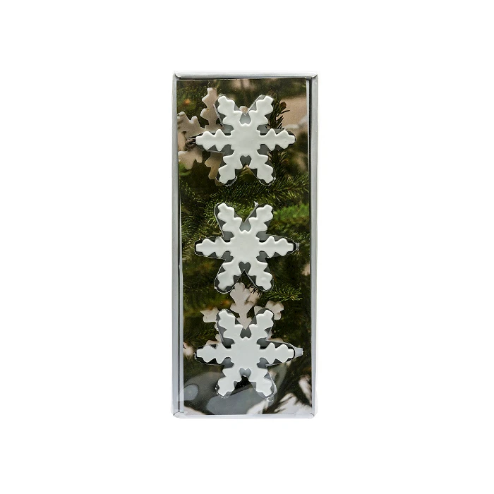 Kivitavarasta valmistettu joulukoriste lumihiutaleet. Ihastuttava ja juhlava lahja kauniissa lahjapakkauksessa. Pakkaus sisältää kolme lumihiutaleen muotoista koristetta.Väri: valkoinenMateriaali: posliiniaKoko: halkaisija 70 mm
