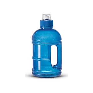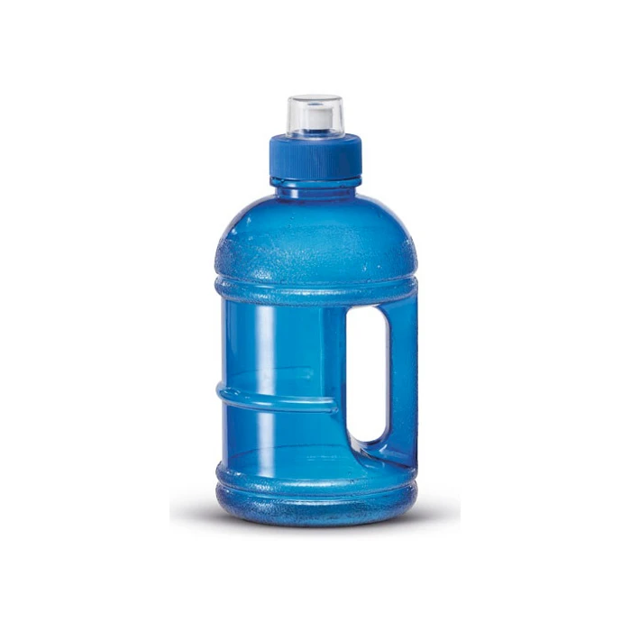 Kanisterin muotoinen juomapullo nostokorkilla. Reilun kokoisen vesipullon tilavuus on 1,25 l. Juomakanisteri on kätevä urheilujuomapullo josta riittää vettä isompaankin janoon. Juomapullon korkeus on 23 cm. Väri: läpinäkyvä, sininenMateriaal: PETG muoviKoko: ø 110 x 230 mm
