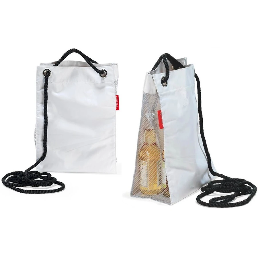 Köysin varustettu juomakassi, jolla jäähdytät juomapullosi meressä tai järvessä. Juomapullokassi sopii veneretkille, saunailtoihin, rantapiknikille tai laiturinnokkaan. Pakkaa juomasi verkolliseen pullokatiskaan, kiristä köydet ja laske veteen. Voit käyttää kassia myös ostoskassina. Kassi taittuu pieneen tilaan.